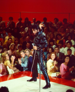 Everything shifted with NBC’s 1968 Comeback Special. Nervous backstage but electrifying on camera, Elvis delivered a performance filled with raw charisma and confidence. His now-iconic black leather outfit—designed by Bill Belew and inspired by Brando’s The Wild One—became a symbol of his rebirth. The blend of leather, silk shirts, and scarves helped redefine his image and marked the start of his artistic revival.