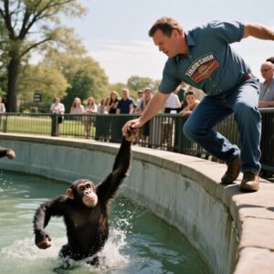 At the Detroit Zoo, a chimp named Jo-Jo fell into a deep moat and couldn’t swim. Onlookers froze — but truck driver Rick Swope didn’t.