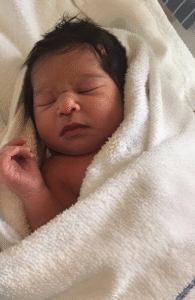 Wrapped in a blanket, Ivy was absolutely radiant — with a thick, velvety mane of deep chocolate-brown hair that shimmered in the light. It was not fuzz or wisps — but full, flowing hair worthy of a fairy tale.