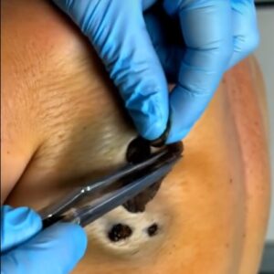 This image appears to show a person with a significant skin or soft tissue condition affecting the thigh and buttock area, possibly related to a medical issue…