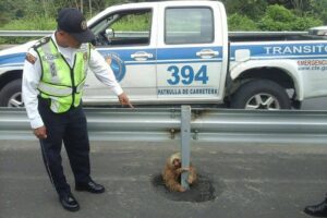 In one of the most adorable rescue missions ever, the sloth was taken to the vet after being picked up by “Ecuadorian” traffic officers.