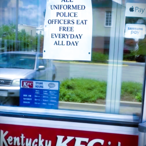 A KFC restaurant in Gallipolis, Ohio, recently sparked discussion after placing a sign on its front door honoring local police officers. The sign read: “All uniformed police…